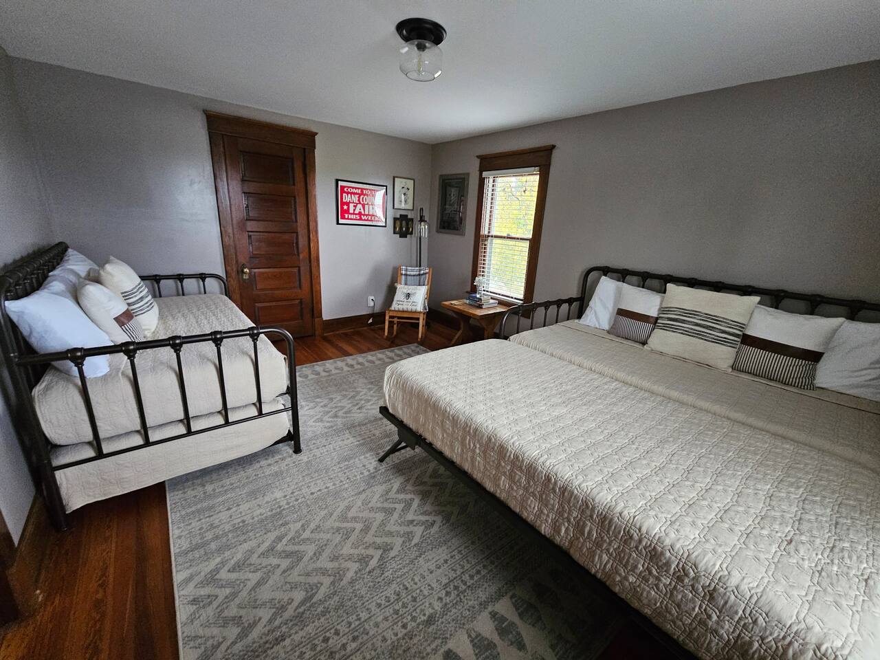 Hi! We're your hosts, Christin & Miguel! We bought this farmstead to keep bees, plant loads of flowers, and to learn how to grow our own food. We've had such a wonderful time learning here, we've decided to share this beautiful space with others! Here’s a quick overview of the best parts of the farm (and some things to be aware of): <b>Pros:</b> ✓ The magic of golden hour & stunning sunsets ✓ The night sky of stars ✓ Fireflies in the summertime ✓ Gorgeous sunrises & morning dew ✓ S'mores at the firepit ✓ Outdoor games (Badminton, horseshoes, and bags) ✓ Our front porch swing, rocking chairs, & hammock ✓ Peaceful walks on our property’s ¼ mile nature trail ✓ Walking distance to Badfish Creek State Park ✓ All the wildlife you can observe ✓ Country life benefits… just 8 minutes from town ✓ A short 16 miles (20 minutes) to our capital, Madison <b>Potential Cons (If you’re not used to them):</b> Ⓧ Bugs. We're in the country! There are houseflies, boxelder bugs & mosquitos... but also lots of bumblebees, ladybugs & fireflies! Ⓧ You may not be used to well water — but we use an Iron Curtain filter Ⓧ **Very important** We run on a septic — this means no flushing ANYTHING but toilet paper. All other items (including items labeled as "flushable") could cause very expensive damage that you will be held responsible for. Ⓧ This is a working farm, therefore we do not allow pets of any kind, as the environment could be dangerous for them, and they could be harmful to our operation. Ⓧ We offer community education experiences, and will notify you of such experiences if they are to occur during your reservation. They will be held outdoors and will not affect your privacy in the farmhouse. Ⓧ There are non-edible plants on the farm. Please be sure to educate yourself and your other guests to not eat anything you are unsure of. <b>Endless Activities for Relaxation and Adventure:</b> Whether you seek solitude or adventure, you'll find it all here! Wander along our 1/4 mile nature trail, pick fresh apples in the orchard, get lost in a book while swaying in a hammock, or embrace your inner yogi in our lush garden. For those craving excitement, Badfish Creek State Park is just across the road, offering hiking, fishing, hunting, and kayaking adventures. Need a little night life? Madison offers so many experiences and is just a short drive away. <b>Ideal for Groups and Special Gatherings</b> This charming farmhouse has become a favorite spot for various groups, from alumni friends reuniting for the big game, to families seeking a central meeting place, and brides and bridesmaids cherishing their pre-wedding moments. Our gourmet chef’s kitchen is fully equipped for you to create memorable meals. You can gather around the large dining table for deep conversations, laughter, and board games. Or spend time outside, playing outdoor games, grilling, or enjoying the firepit! <b>Check out our long stay discounts!</b> Traveling for work? Send us a message. We would love to host you for a week, month, or more!